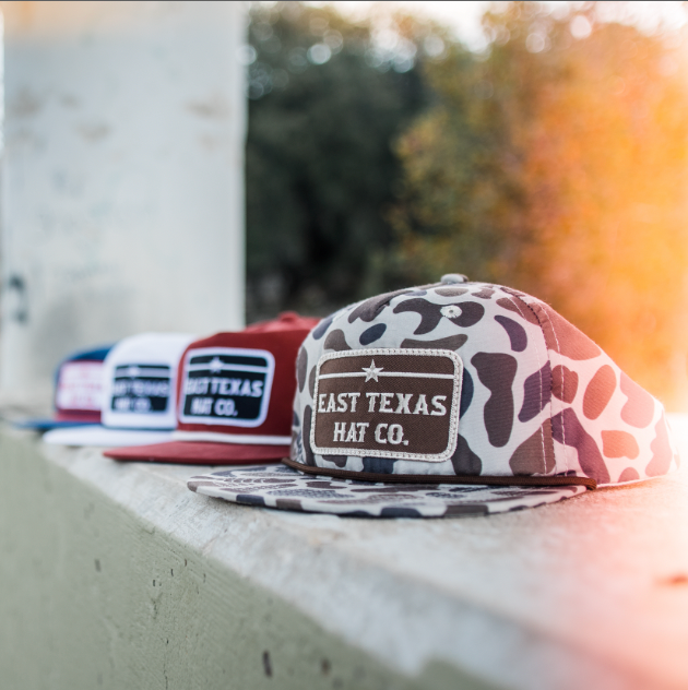 Classic Trucker Hat, with vintage East Texas patches and stitched designs.