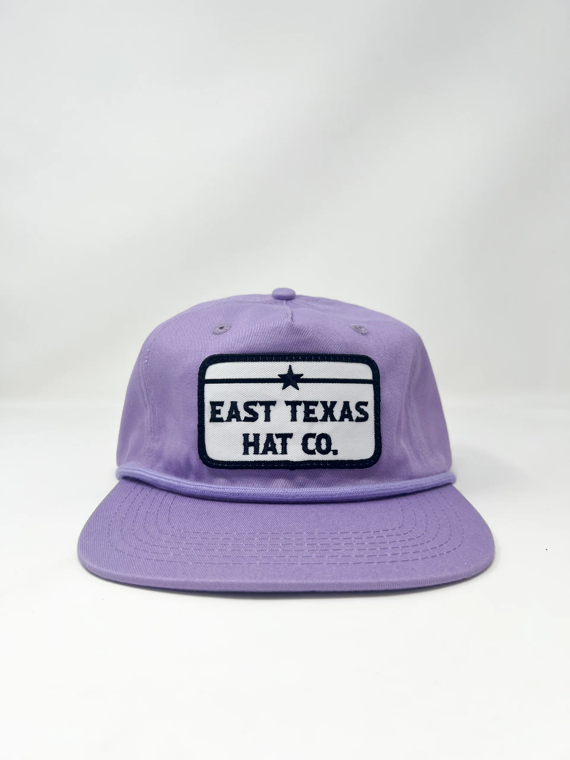 100% cotton Lavender Grandpa Cap With Deep Purple Rope, and a White Texas Made Patch with Black Stitching.
