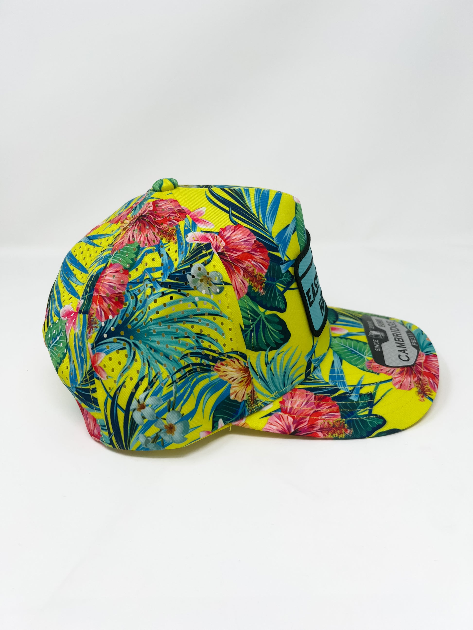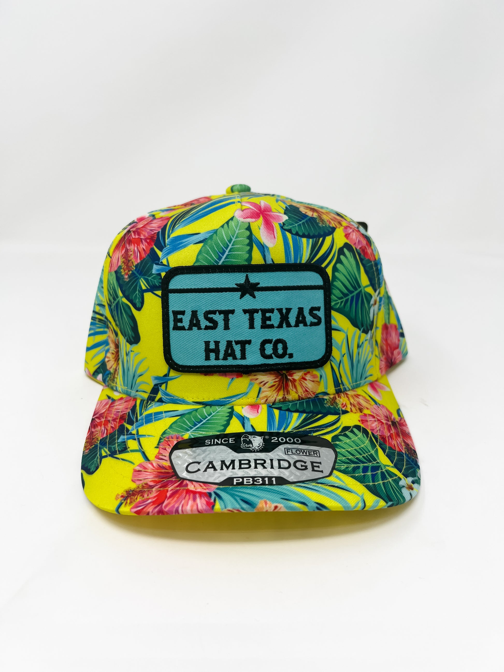 The Iron Bloom combines tropical elegance with Texas pride. This floral Hawaiian hat features vibrant botanical patterns that evoke island sophistication, anchored by a distinctive Tiffany blue patch bearing the ETX Hat Co. mark. The striking color contrast creates a modern take on classic Hawaiian style, perfect for those seeking a statement piece that bridges casual charm with refined taste. Ideal for sun protection with unmistakable character.